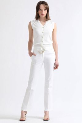 Pantalon Flare, Tiro Medio, Con Cinturon, Crudo Liola | Paris