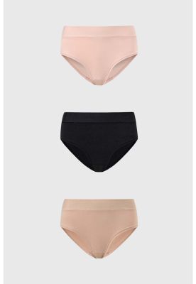 Calzón Mujer Tripack Bikini Liso Negro