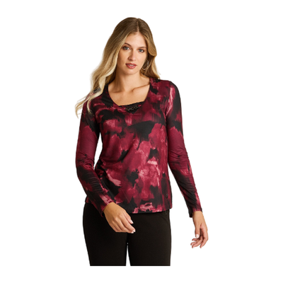 Polera Escote V Con Aplicación Tacto Caliente Estampada Tipo De Producto: Polera Composición: 97% Poliester 3% Spandex Modelo: 10854673 Color: Burdeo Colección: Basicos Invierno Marca: Lorenzo di Pontti