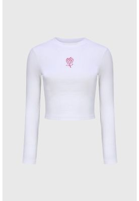 Polera Niña Rib Print Bordado Blanco