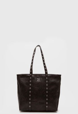 La Tote Gibson combina la elegancia del cuero vegano con el toque rebelde de sus tirantes decorados con ojetillos metálicos. Espaciosa y sofisticada, es perfecta para quienes buscan un estilo audaz y funcional en su día a día o para brillar en temporada de festivales. ¡Pura actitud!