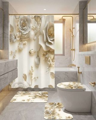 Juego 5 piezas con Cortina de baño de Tela Poliéster y Forro de Ducha de Plástico J-18