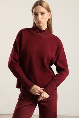 Jersey punto jacquard flores, burdeo Liola