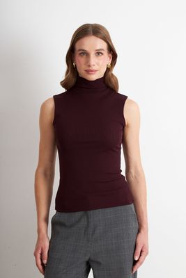 Polera Malla Cuello Alto Burdeo Nicopoly | Paris