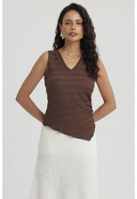Polera Mujer Textura Recogido En Pecho Café