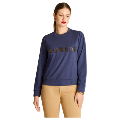 Poleron Algodon Azul Manga Larga Elasticidad Baja Sin Forro Calce Normal Tela Punto | Paris