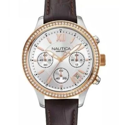 Los relojes Nautica capturan la esencia del estilo náutico con su diseño robusto y deportivo. Inspirados en el mar, estos relojes combinan funcionalidad con moda, ofreciendo durabilidad y precisión. Con características como cronógrafos y resistencia al agua, los modelos de Nautica son ideales para actividades al aire libre y para quienes buscan un estilo aventurero y sofisticado. Características: -Género: Hombre -Tipo de maquinaria: Cuarzo -Diámetro: 36mm -Material de la caja: Acero Inoxidable -Color de la caja: Plateado -Cristal: Mineral -Corona: Tirar Empujar -Resistencia al agua: 10 Bar (100 metros) -Tipo de bisel: Fijo -Color del bisel: Dorado -Color de la esfera: Plata -Material de la correa: Cuero -Color de la correa: Cafe -LumiNova: Si