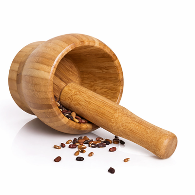 Mortero De Bambú Molinillo Manual Especias Ajo