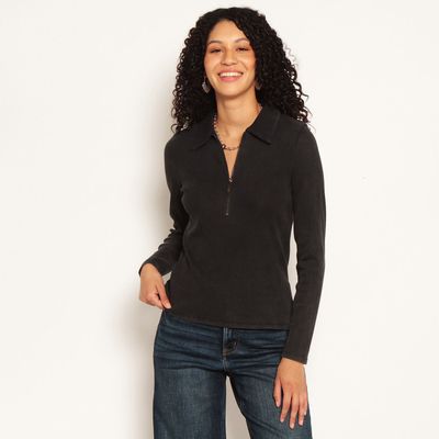 Polera Manga Larga Acid Wash Con Cierre En Escote | Paris