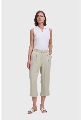 Pantalón Mujer Sastrero Con Cinturón Caqui | Paris