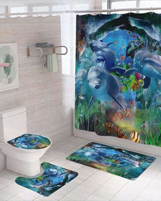 Juego 5 piezas con Cortina de baño de Tela Poliéster y Forro de Ducha de Plástico J-19