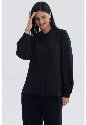 Blusa Mujer Manga Ancha Pata Botón Negro | Paris