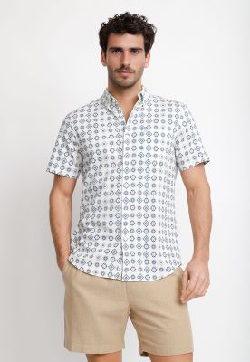 Camisa Hombre Manga Corta Estampada Oxford