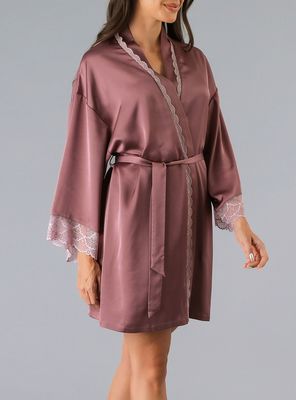 Bata Satín Encaje Rosado