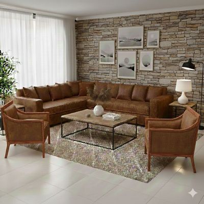 Living 311 Burton Cafe en cuero sintetico envejecido seccional resorte f comfort + 2 sitiales | Paris