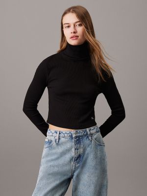 Polera LS Woven Label Negro Calvin Klein | Paris