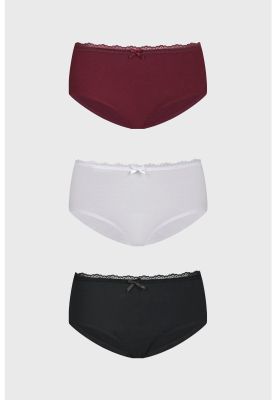 Calzón Mujer Tripack Pantaleta Detalle Encaje Blanco