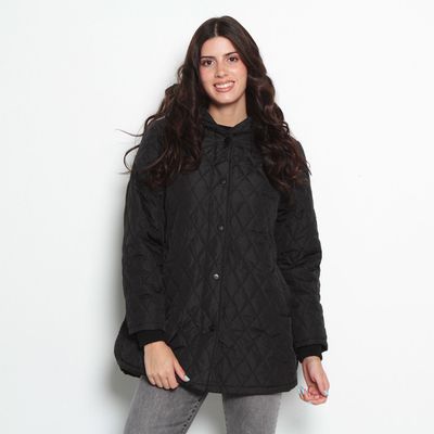 Parka Quilt Manga Larga Con Capucha Abrochada En Delantero | Paris