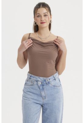 Peto Mujer Escote Drapeado Café