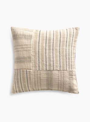 Funda rectangular patchwork gris oscuro con rayas. Artesanal y moderna , con cierre oculto. Caracter textil con matices unicos. Trasero id entico al frontal. Lavable y duradera para uso cotidiano.