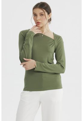 Polera Mujer Asimétrico Verde Olivo | Paris