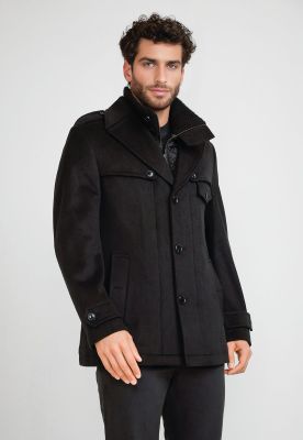 Abrigo Hombre Lana Espiga Negro