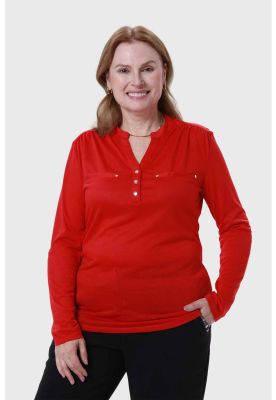 Polera Mujer Cuello Abotonado Rojo | Paris