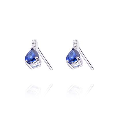 Aros Oro Blanco 18kt Diamantes 14 Pts y Zafiro 1,25 Qlts