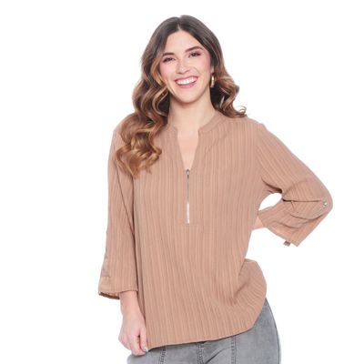 Blusa Manga Larga Solida Con Cierre En El Delantero | Paris