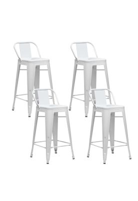 Tolix - Pack 4 Pisos 77Cm Blanco Respaldo Bajo, Bar
