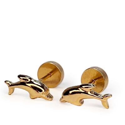 Aros Abridor Bebe Delfín Lamina Oro 20 k cierre clic | Paris