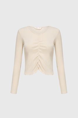Polera Niña Recogido Delantero Beige | Paris