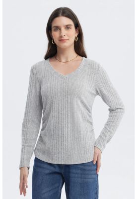 Polera Mujer Lazo Puño Gris Melange