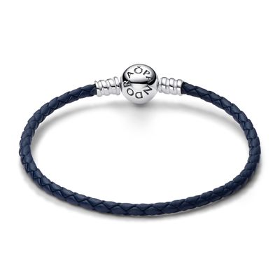 Brazalete de Cuero Trenzado azul con Broche Redondo en Plata | Paris