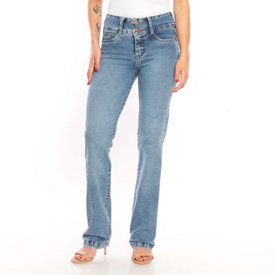 Jeans Flare Tiro Alto Pretina 2 Botones