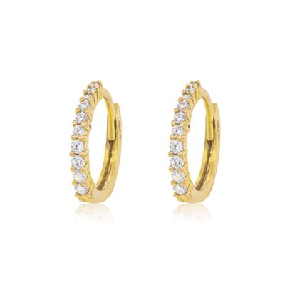 Aros Oro Amarillo 18kt Argollas Pequeñas Circonita 11MM