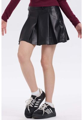 Falda Niña Efecto Cuero Tableada Negro | Paris