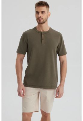 Polera Hombre Pique Wafle Con Botones Verde Olivo
