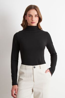 Polera Manga Larga Cuello Alto Negro Nicopoly | Paris
