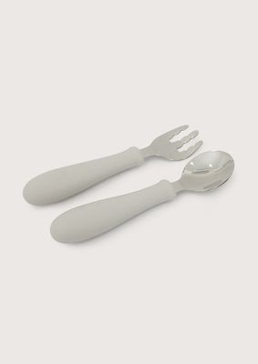 Set cuchara y tenedor silicona acero giratorios gris | Paris