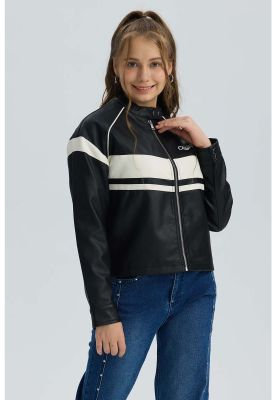 Chaqueta Niña Efecto Cuero Negro | Paris