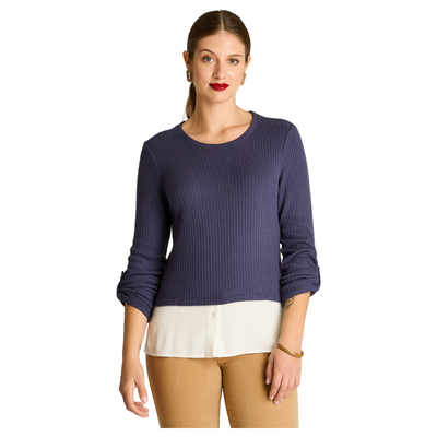 Polera de Lanilla Azul Manga Larga con Roll Up | Paris