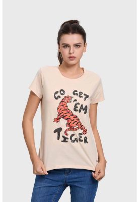 Polera Mujer Básica Print Beige Claro