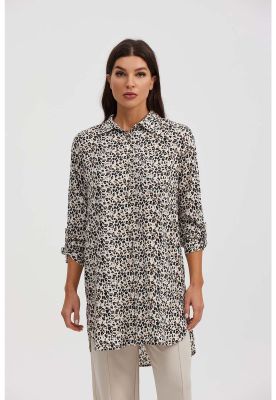 Blusa Mujer Larga Con Botón Parche Beige | Paris