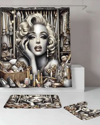 Juego 5 piezas con Cortina de baño de Tela Poliéster y Forro de Ducha de Plástico J-9