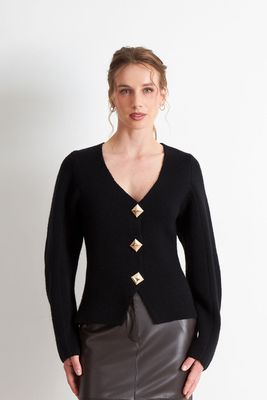 Cárdigan Cuello V con 3 Botones Negro Nicopoly