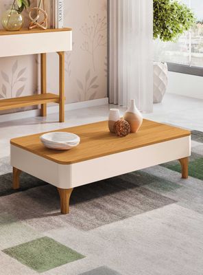 Su cubierta en tono cinamomo aporta un acabado natural tipo madera, mientras que su estructura en off white crea un contraste elegante y luminoso para tu living. Fabricada en MDF de alta calidad, es resistente y funcional para el uso diario. Su diseño de líneas suaves y patas en tono madera la convierten en un mueble decorativo y práctico, ideal para complementar cualquier sala de estar.