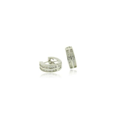 Aros de Plata Esterlina 925 Argollas Riel Doble Circonita | Paris