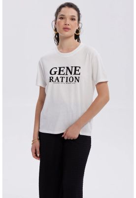 Polera Mujer Print Mujeres Con Aplicación Crudo