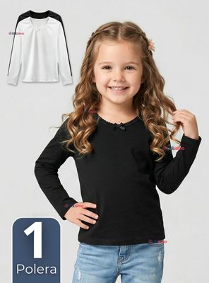 ¿Cansada de buscar qué ponerle a tu hija bajo el uniforme o para una tarde de juegos? La Camiseta de Algodón Manga Larga es esa pieza "salvavidas" que no puede faltar. Con un diseño de cuello redondo impecable y un delicado detalle de lazo que le da un toque de ternura único, estas camisetas son la base perfecta para cualquier outfit. Son tan cómodas que se convertirán en su prenda favorita desde el primer momento.